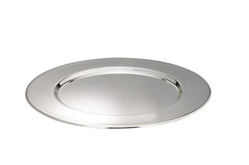 Platzteller, versilbert, rund, breiter, schlichter Rand