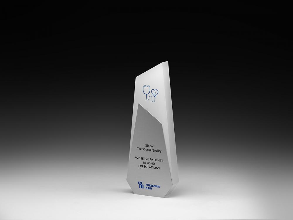 Aufstrebend gestaltet: Acrylglas trifft auf eloxiertes Aluminium und verleiht dem Award eine klare, zeitgemäße Wirkung.