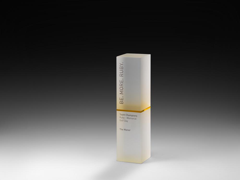 Das amberfarbene Kristallglas lässt den Award wahrlich glühen. Unheimlich modern und einzigartig. Mit sandgestrahltem Kristallglas und amber-farbigem Einlageglas ist dieser Award ein würdiges Kompliment für ihre Preisträger oder Errungenschaften (2,3kg).