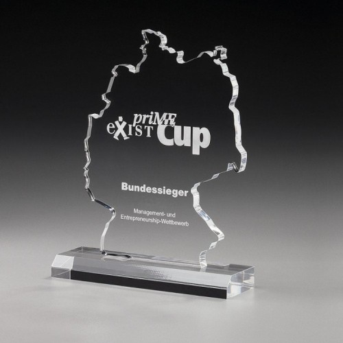 Acrylformschnitte mit den Konturen der Landesgrenzen von Deutschland, Europa und Frankreich. Lieferbar ist diese Trophäe mit einer Stärke von 10 mm bzw. 20 mm. Weitere Länder sind auf Anfrage ebenfalls möglich.