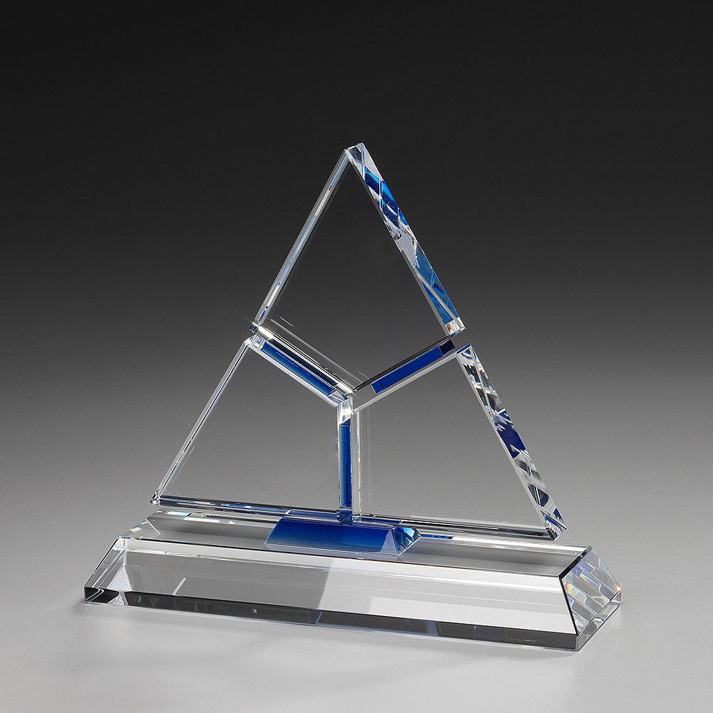 Puzzle-förmig baut sich diese elegante Trophäe auf, verbunden mit dekorativen Indigo-Crystal Elementen. Massives Kristallglas mit 19 mm Stärke (1,7kg)