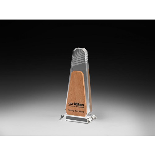 Zeitlos aber modernes Design strahlt der freistehende Apsen Award mit seiner Kombination aus Glas und Holz (1,2kg).