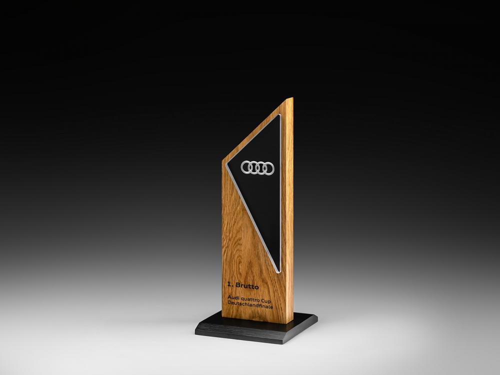 Für Entscheidungen mit Richtung. Tiefgefrästes Eichenholz mit zweifacher Acrylglas-Einlage.