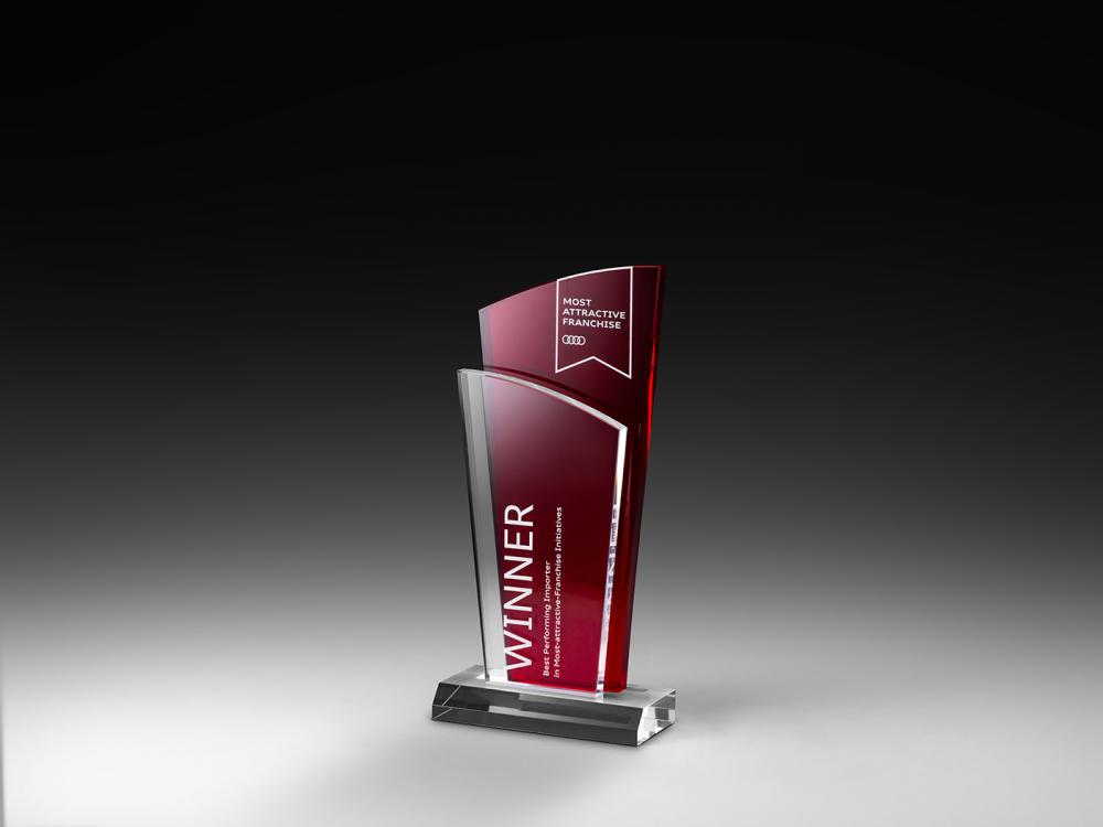 Zwei geschwungene Elemente aus roten und klarem Acrylglas in 10 mm Stärke. Der Fire Twin wirkt dynamisch, präsent und bewusst auffällig.