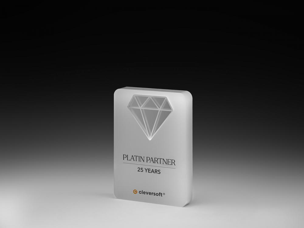 Das eingelassenes, gefrostetes Acrylglas-Element sorgt für Tiefe und visuelle Spannung — ein Diamant unter den Awards.