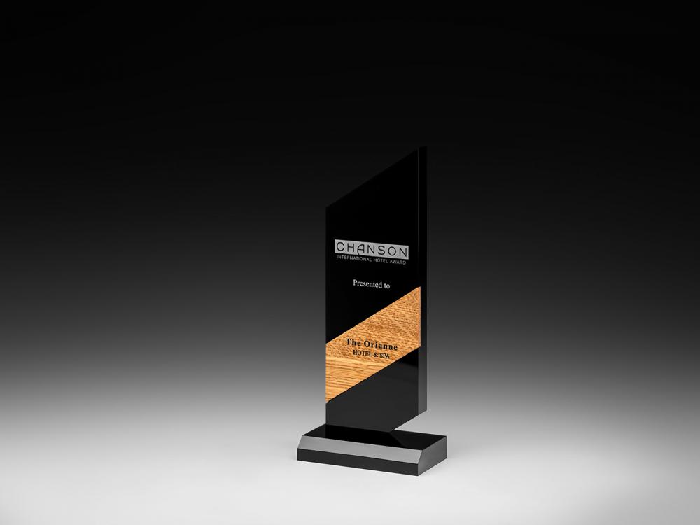 Tiefschwarzes Acryl trifft auf warme Eiche. Ein starker Kontrast mit ikonischer Wirkung.