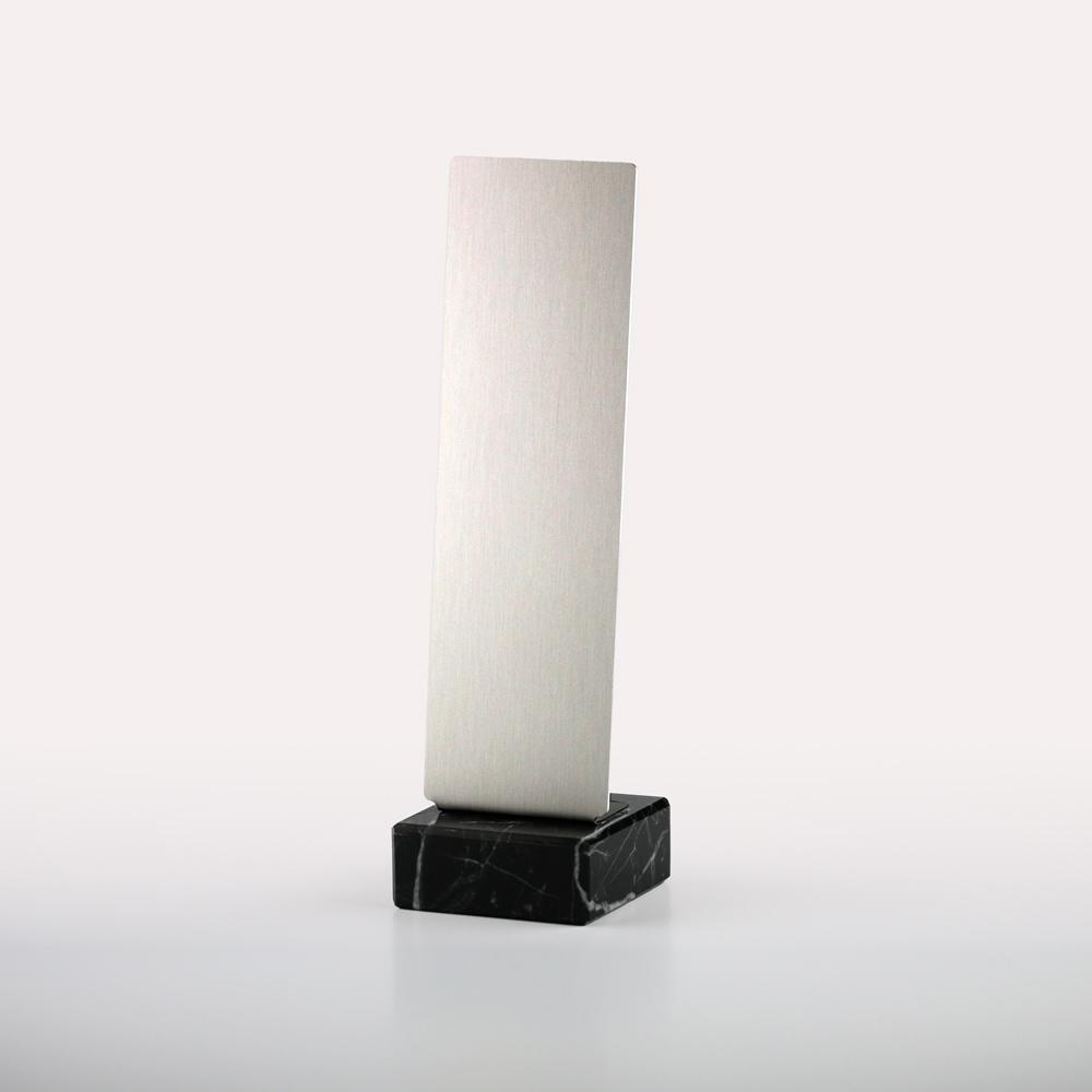 Trophäe, Aluminiumplatte, 1,5 mm stark , Eloxalqualität auf Marmorsockel 8x8x3 cm